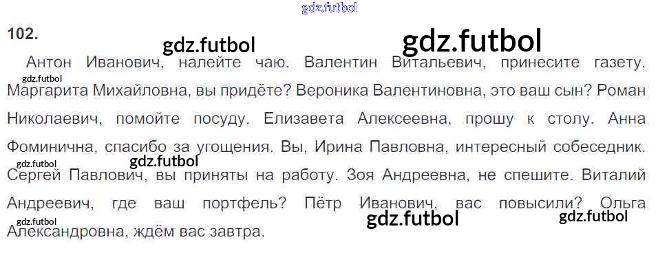Готовые домашние задания по Русскому языку за 8 класс Львов Рабочая тетрадь УМК 2016 ФГОС - Упражнения 102