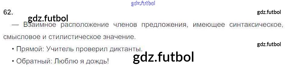 Готовые домашние задания по Русскому языку за 8 класс Львов Рабочая тетрадь УМК 2016 ФГОС - Упражнения 62