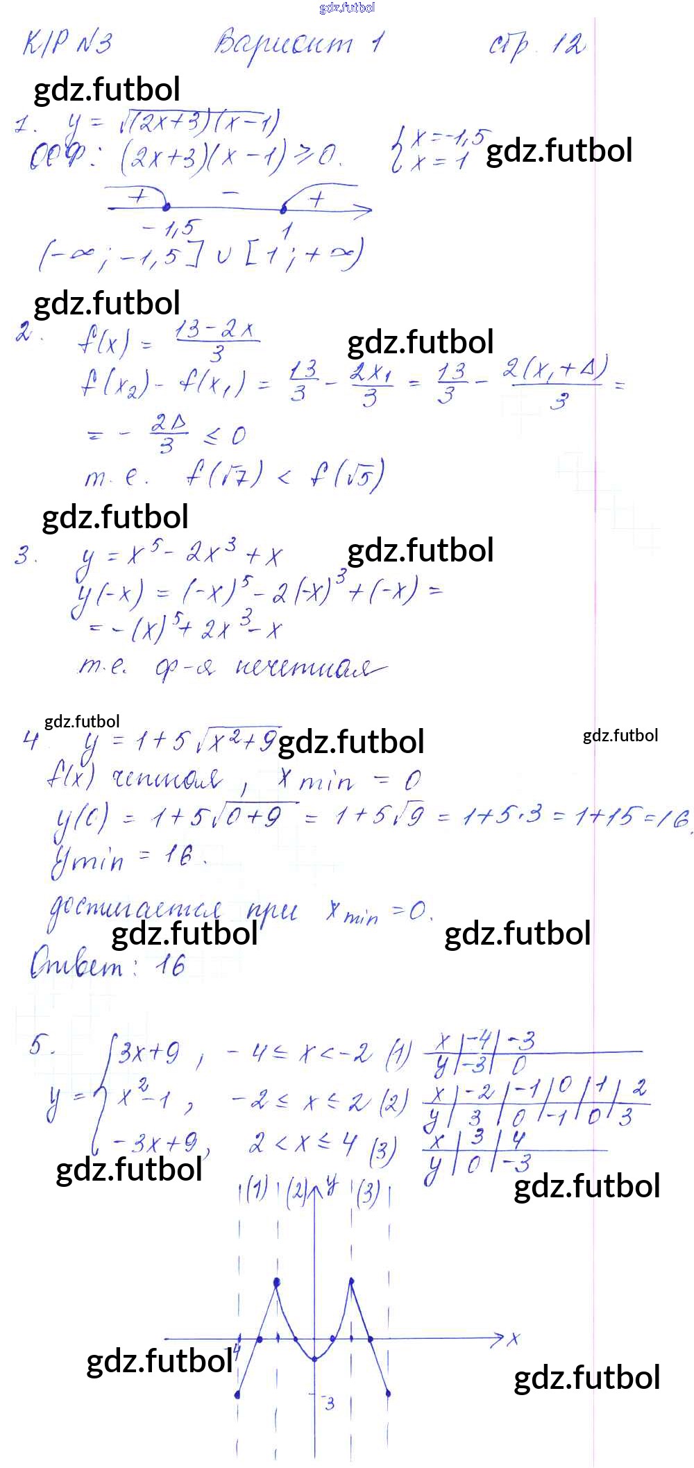 Готовые домашние задания по Алгебре за 9 класс Александрова Контрольные работы Базовый уровень 2016 ФГОС - Контрольная работа №3 вариант №1