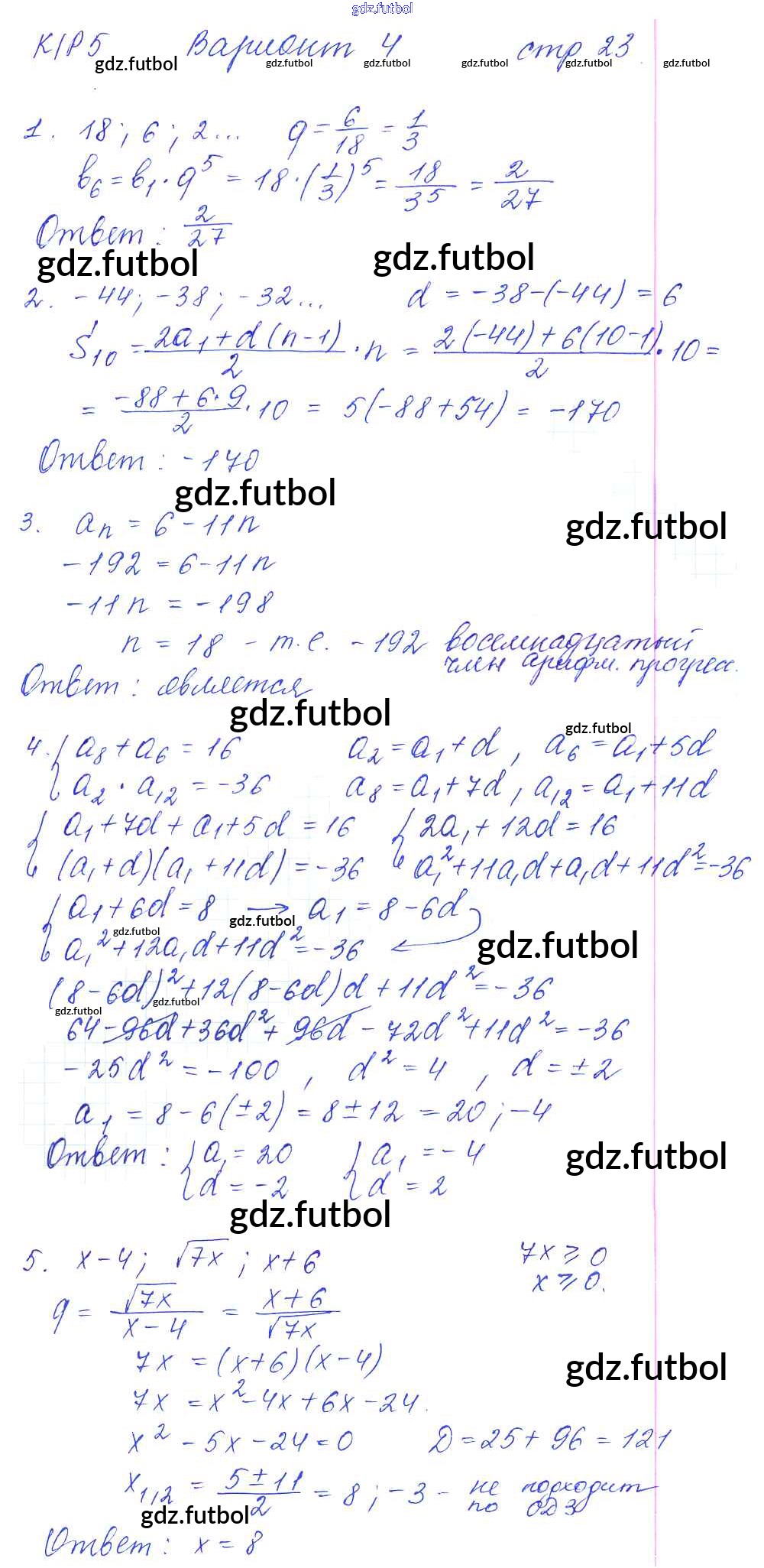 Готовые домашние задания по Алгебре за 9 класс Александрова Контрольные работы Базовый уровень 2016 ФГОС - Контрольная работа №5 вариант №4