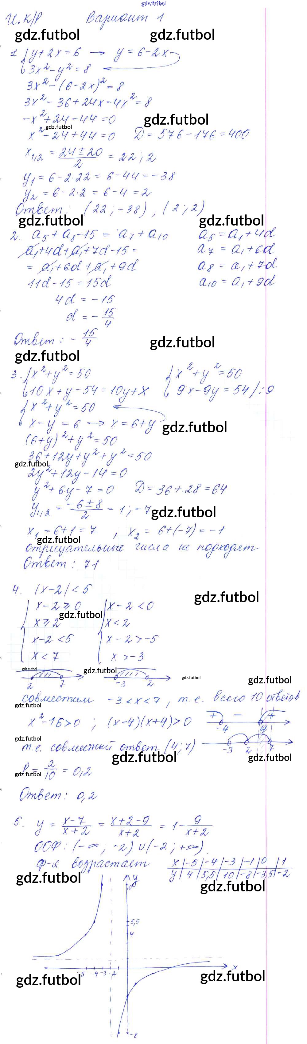 Готовые домашние задания по Алгебре за 9 класс Александрова Контрольные работы Базовый уровень 2016 ФГОС - Итоговая контрольная работа вариант №1