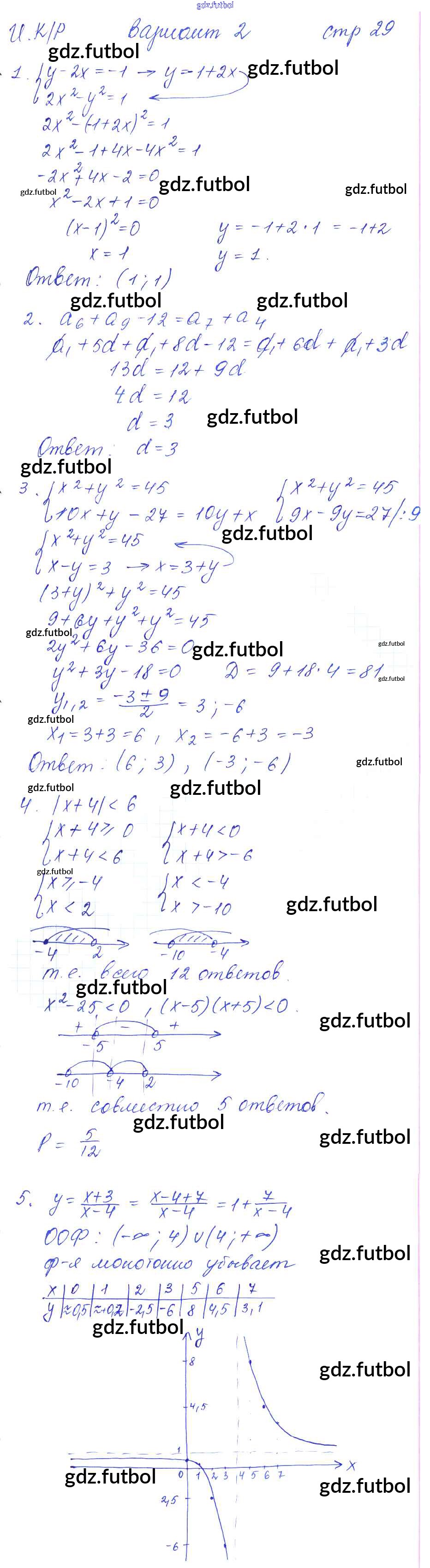 Готовые домашние задания по Алгебре за 9 класс Александрова Контрольные работы Базовый уровень 2016 ФГОС - Итоговая контрольная работа вариант №2