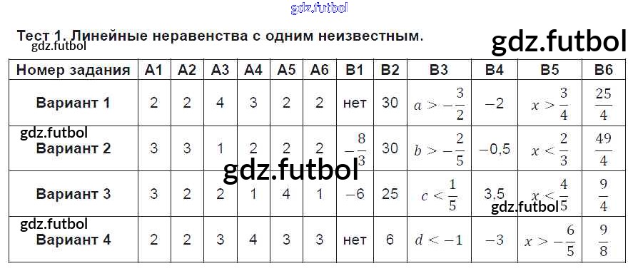 Готовые домашние задания по Алгебре за 9 класс Чулков Тематические тесты 2017 ФГОС - Тесты Тест №1. Линейные неравенства с одним неизвестным