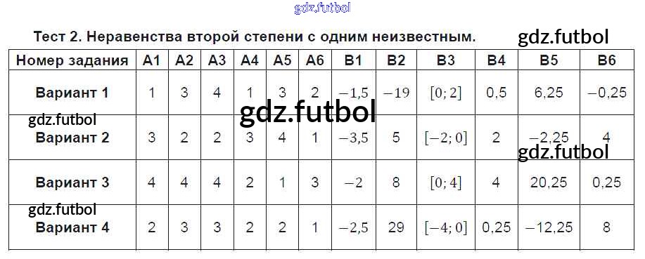 Готовые домашние задания по Алгебре за 9 класс Чулков Тематические тесты 2017 ФГОС - Тесты Тест №2. Неравенства второй степени с одним неизвестным