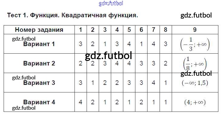 Готовые домашние задания по Алгебре за 9 класс Дудницын Тематические тесты 2017 ФГОС - Тесты Тест 1. Функция. Квадратичная функция
