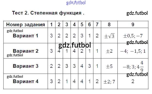 Готовые домашние задания по Алгебре за 9 класс Дудницын Тематические тесты 2017 ФГОС - Тесты Тест 2. Степенная функция