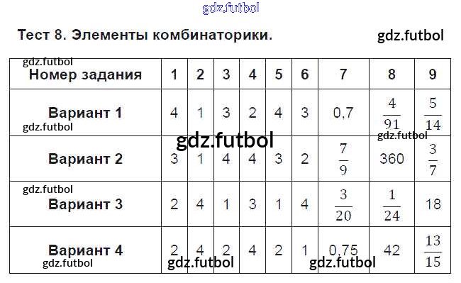 Готовые домашние задания по Алгебре за 9 класс Дудницын Тематические тесты 2017 ФГОС - Тесты Тест 8. Элементы комбинаторики