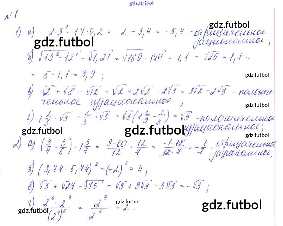 Готовые домашние задания по Алгебре за 9 класс Евстафьева Дидактические материалы 2017 ФГОС - О-1. Действительные числа 1