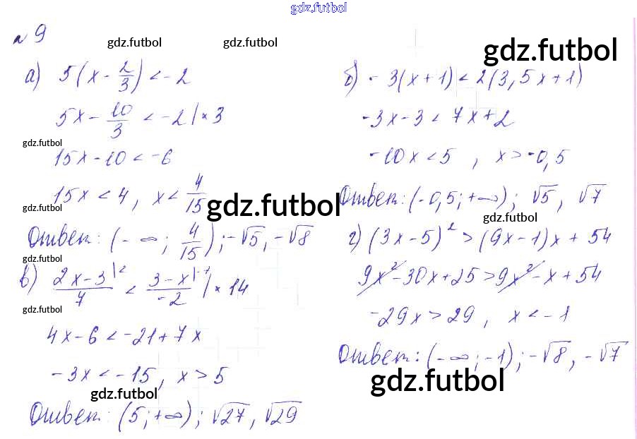 Готовые домашние задания по Алгебре за 9 класс Евстафьева Дидактические материалы 2017 ФГОС - О-3. Решение неравенств 9