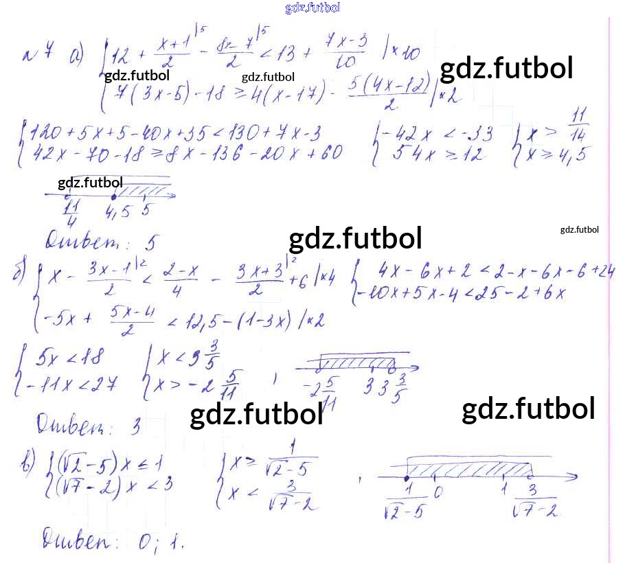 Готовые домашние задания по Алгебре за 9 класс Евстафьева Дидактические материалы 2017 ФГОС - О-4. Решение систем линейных неравенств 7