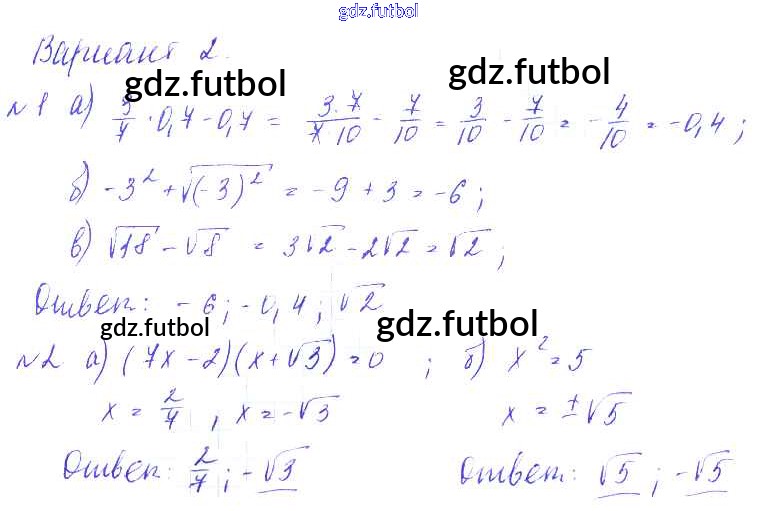 Готовые домашние задания по Алгебре за 9 класс Евстафьева Дидактические материалы 2017 ФГОС - П-1. Действительные числа Вариант 2