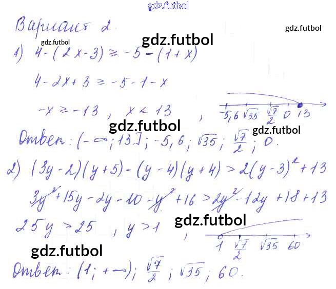 Готовые домашние задания по Алгебре за 9 класс Евстафьева Дидактические материалы 2017 ФГОС - П-10. Решение линейных неравенств Вариант 2