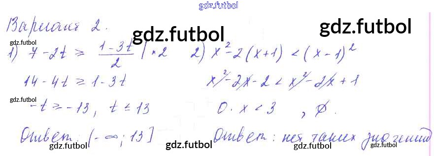 Готовые домашние задания по Алгебре за 9 класс Евстафьева Дидактические материалы 2017 ФГОС - П-11. Решение линейных неравенств Вариант 2