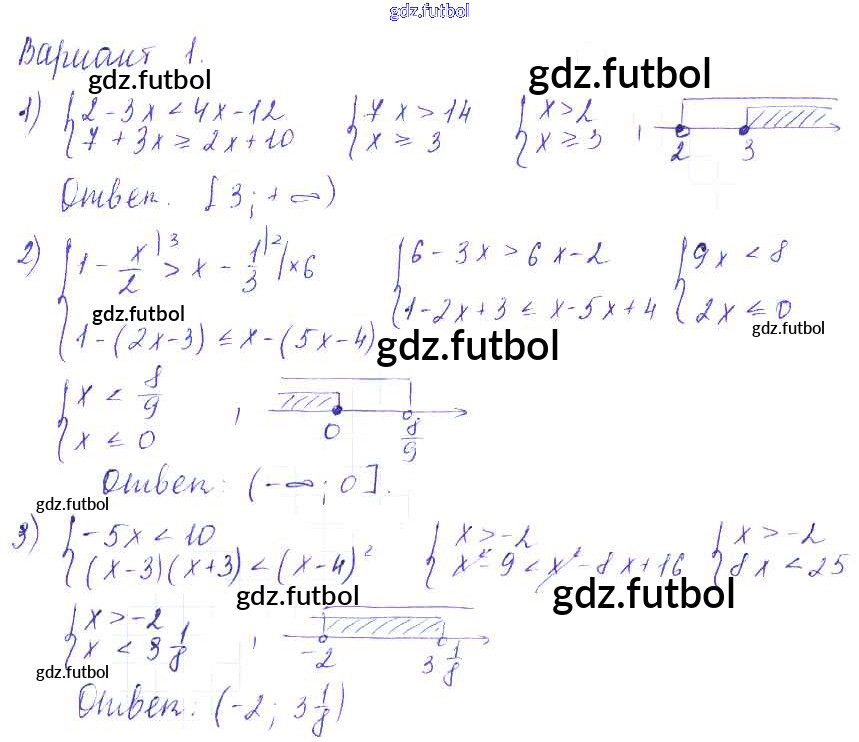 Готовые домашние задания по Алгебре за 9 класс Евстафьева Дидактические материалы 2017 ФГОС - П-13. Решение систем неравенств Вариант 1