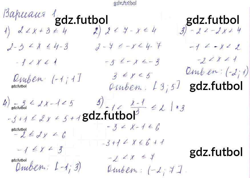 Готовые домашние задания по Алгебре за 9 класс Евстафьева Дидактические материалы 2017 ФГОС - П-14. Решение двойных неравенств Вариант 1