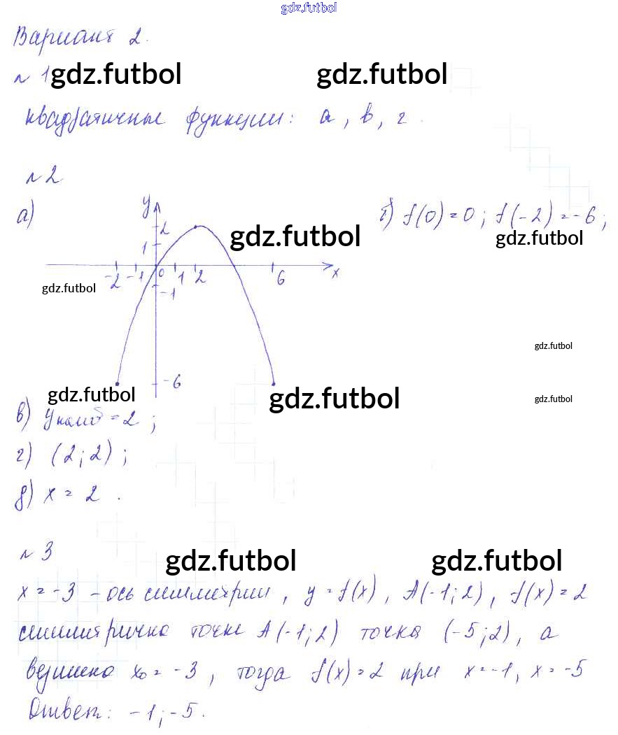 Готовые домашние задания по Алгебре за 9 класс Евстафьева Дидактические материалы 2017 ФГОС - П-18. Какую функцию называют квадратичной Вариант 2