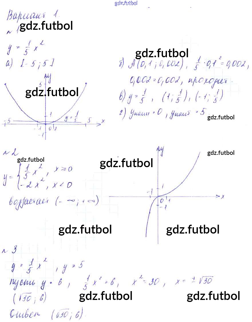 Готовые домашние задания по Алгебре за 9 класс Евстафьева Дидактические материалы 2017 ФГОС - П-19. График и свойства функции y = ax2 Вариант 1