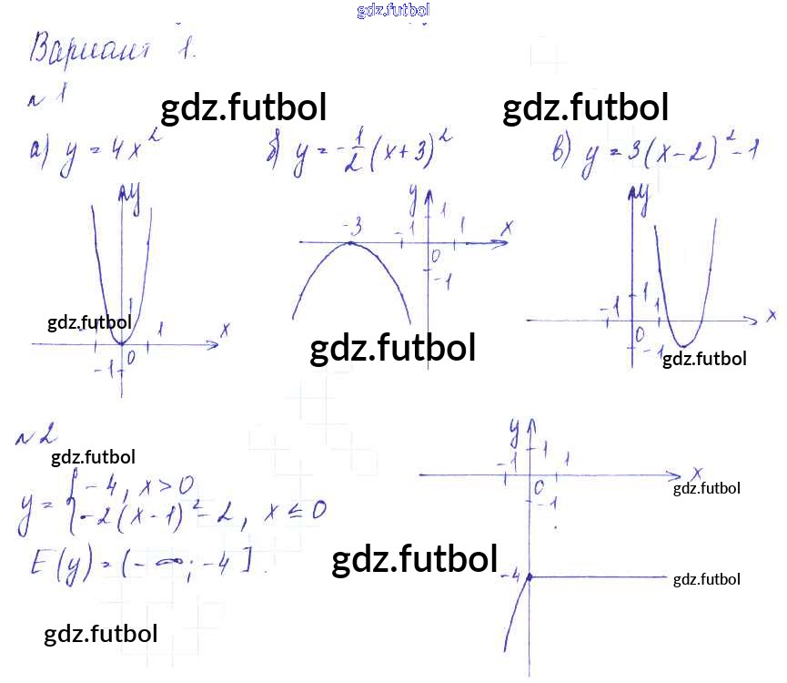 Готовые домашние задания по Алгебре за 9 класс Евстафьева Дидактические материалы 2017 ФГОС - П-20. Сдвиг графика функции y = ax2 вдоль осей координат Вариант 1