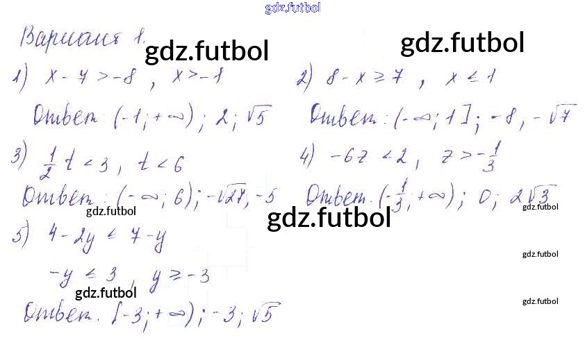 Готовые домашние задания по Алгебре за 9 класс Евстафьева Дидактические материалы 2017 ФГОС - П-8. Решение линейных неравенств Вариант 1