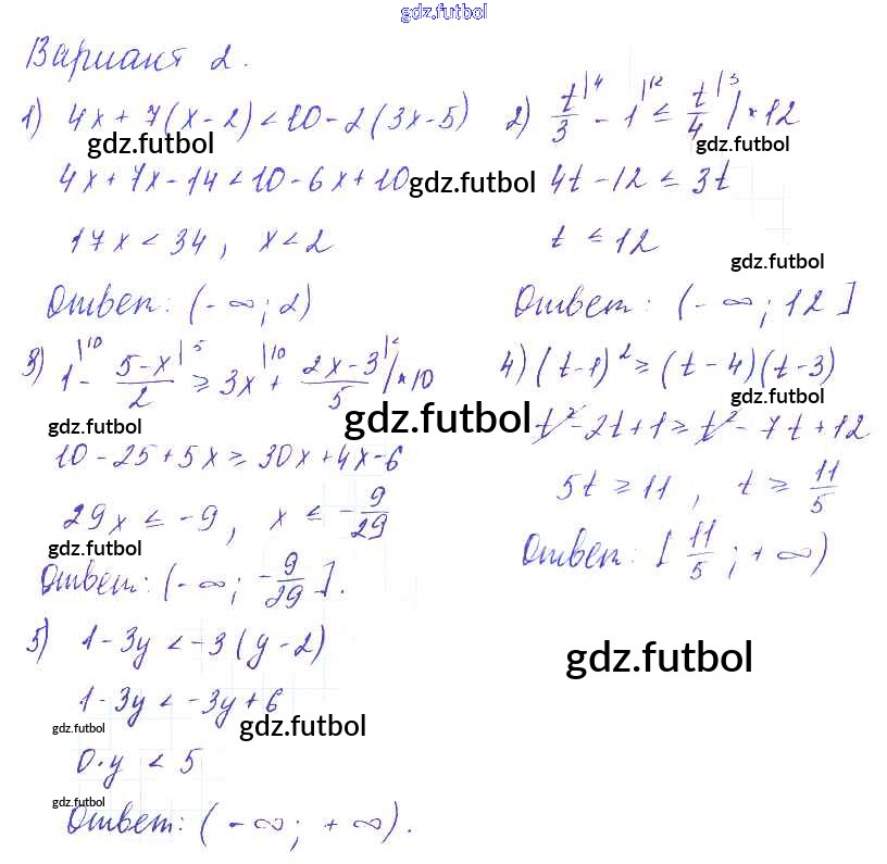 Готовые домашние задания по Алгебре за 9 класс Евстафьева Дидактические материалы 2017 ФГОС - П-9. Решение линейных неравенств Вариант 2