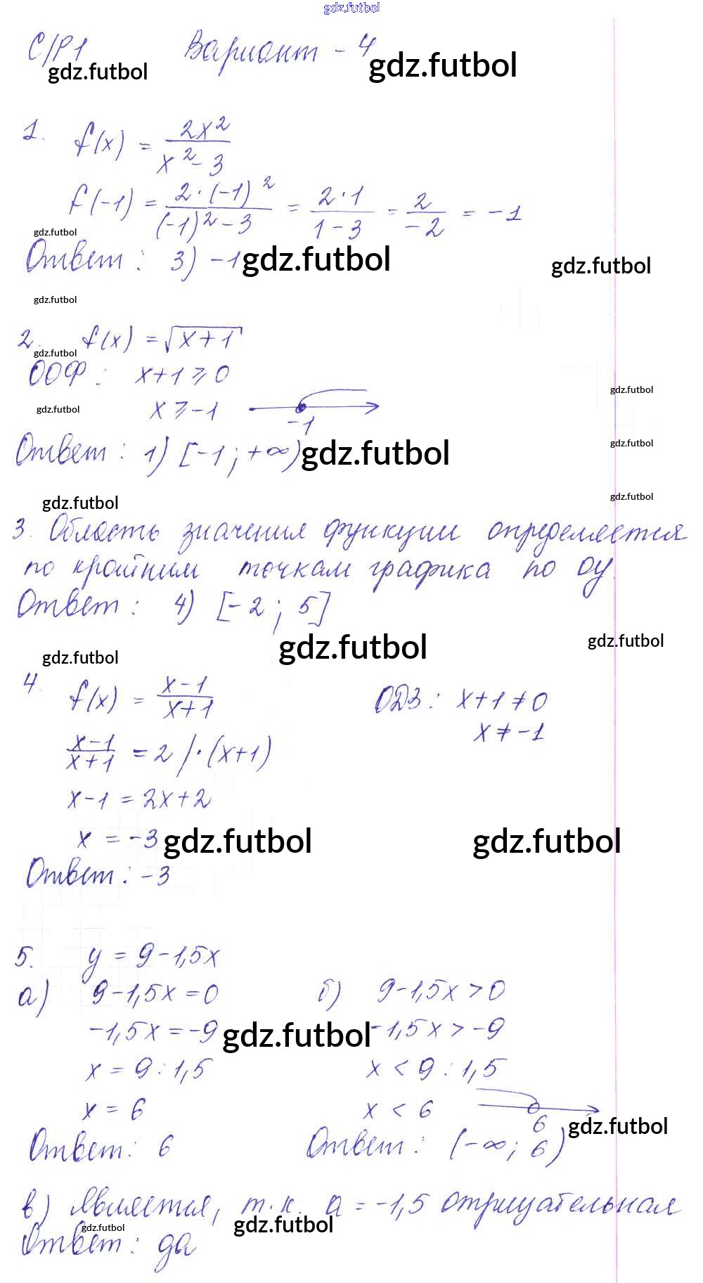 Готовые домашние задания по Алгебре за 9 класс Глазков Самостоятельные и контрольные работы УМК 2013 ФГОС - СР-1. Функции и их свойства вариант 4