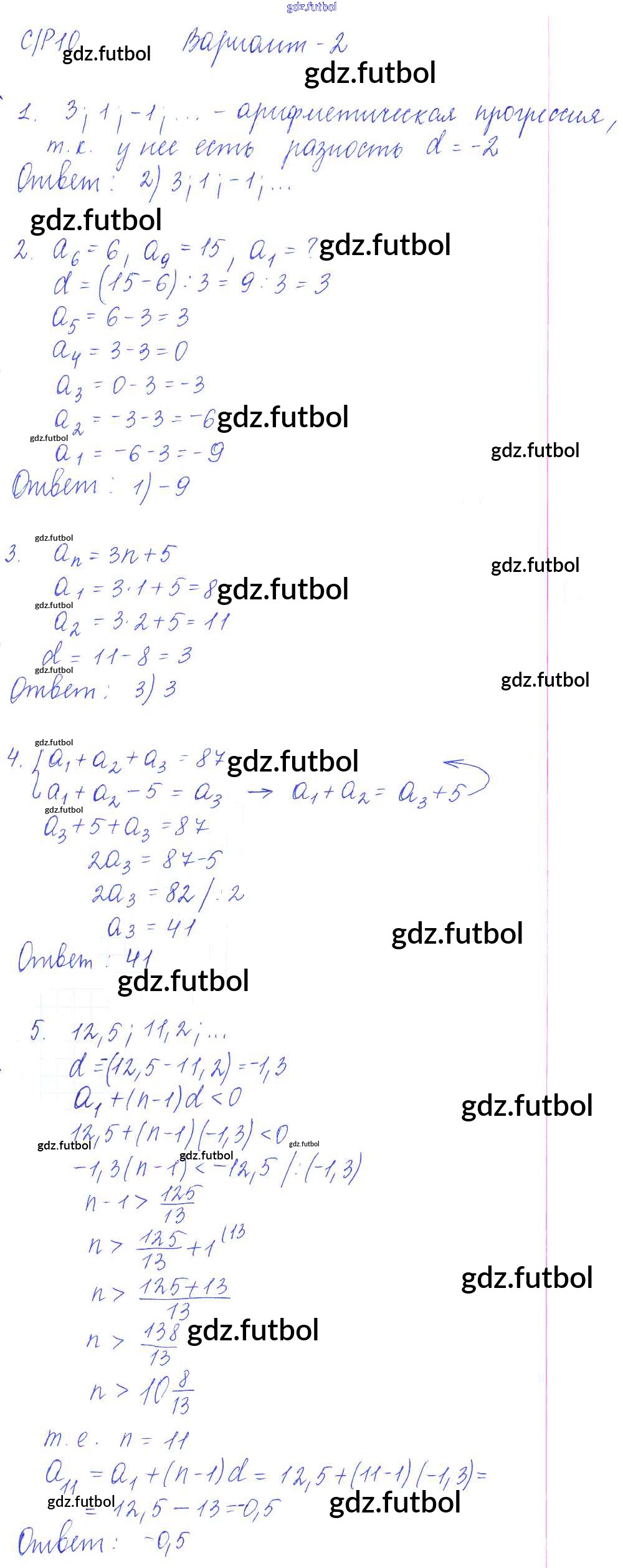 Готовые домашние задания по Алгебре за 9 класс Глазков Самостоятельные и контрольные работы УМК 2013 ФГОС - СР-10. Арифметическая прогрессия вариант 2