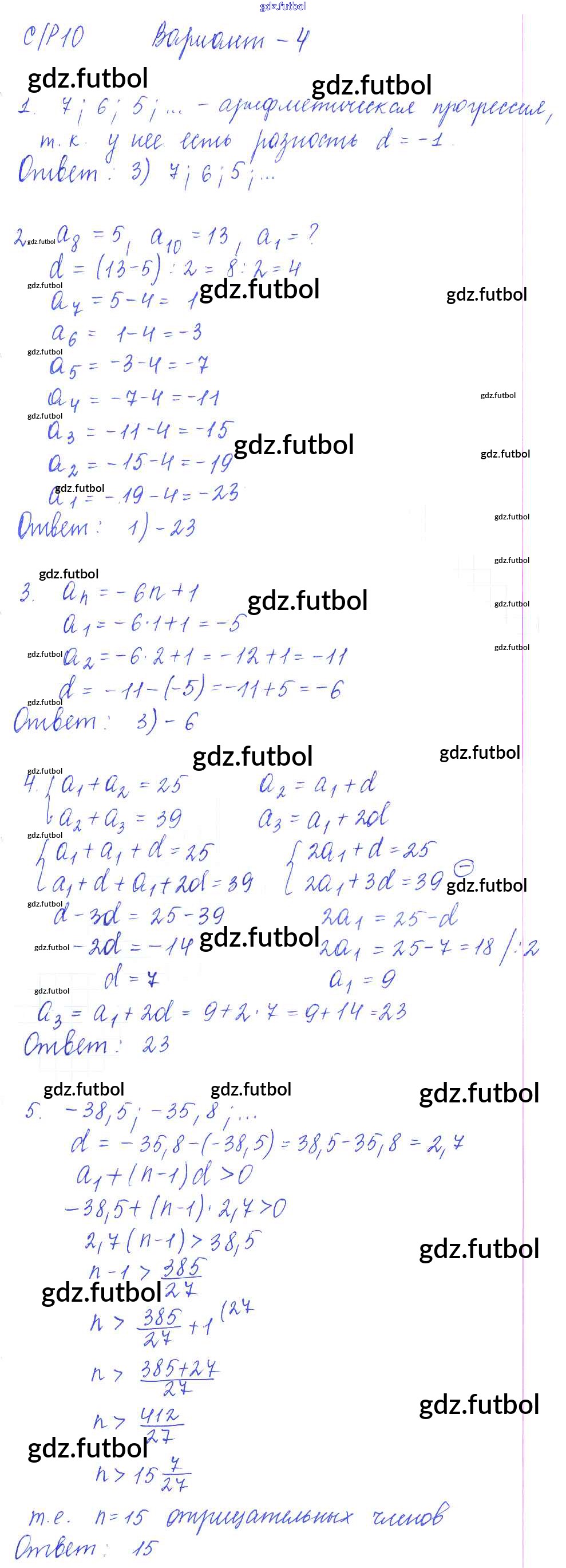 Готовые домашние задания по Алгебре за 9 класс Глазков Самостоятельные и контрольные работы УМК 2013 ФГОС - СР-10. Арифметическая прогрессия вариант 4