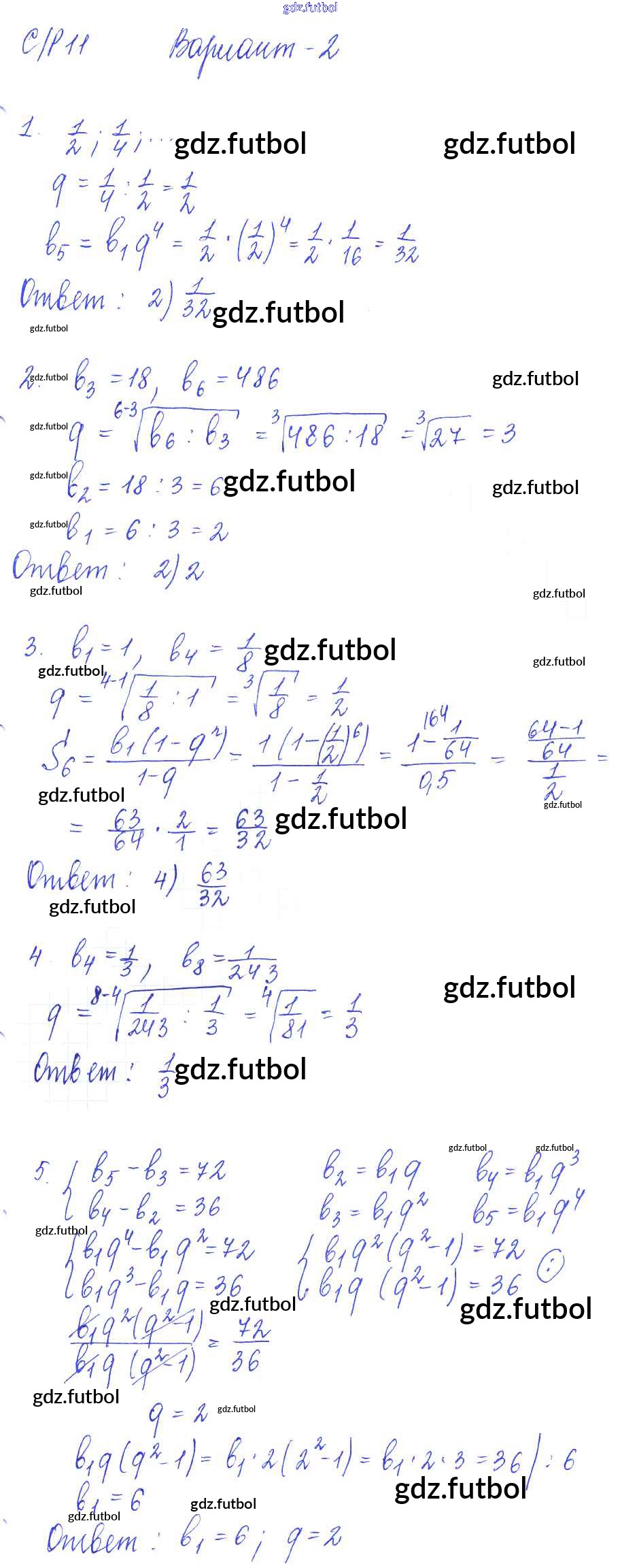Готовые домашние задания по Алгебре за 9 класс Глазков Самостоятельные и контрольные работы УМК 2013 ФГОС - СР-11. Геометрическая прогрессия вариант 2