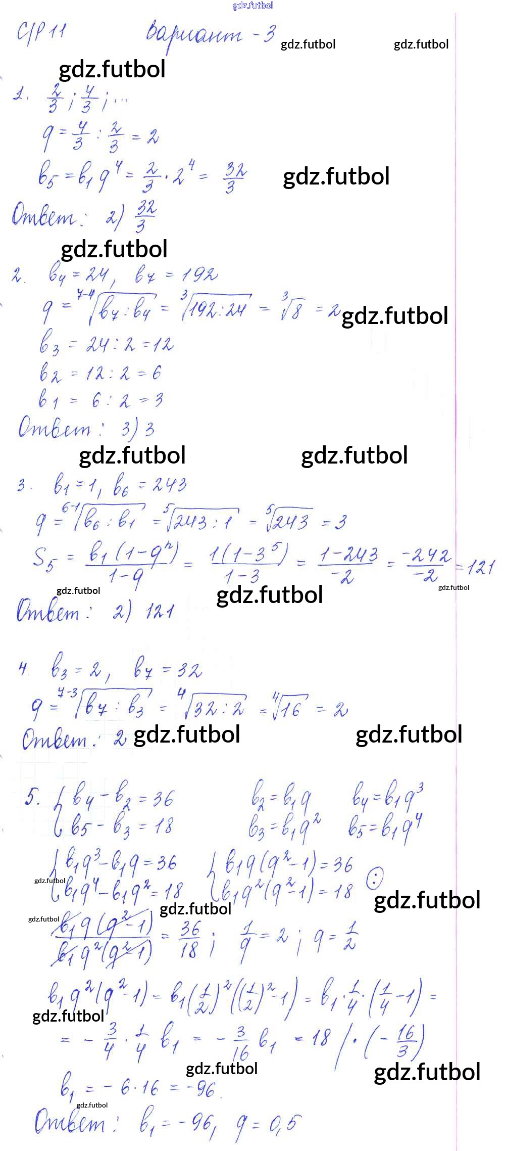 Готовые домашние задания по Алгебре за 9 класс Глазков Самостоятельные и контрольные работы УМК 2013 ФГОС - СР-11. Геометрическая прогрессия вариант 3