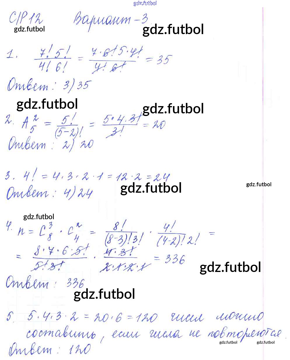 Готовые домашние задания по Алгебре за 9 класс Глазков Самостоятельные и контрольные работы УМК 2013 ФГОС - СР-12. Элементы комбинаторики вариант 3