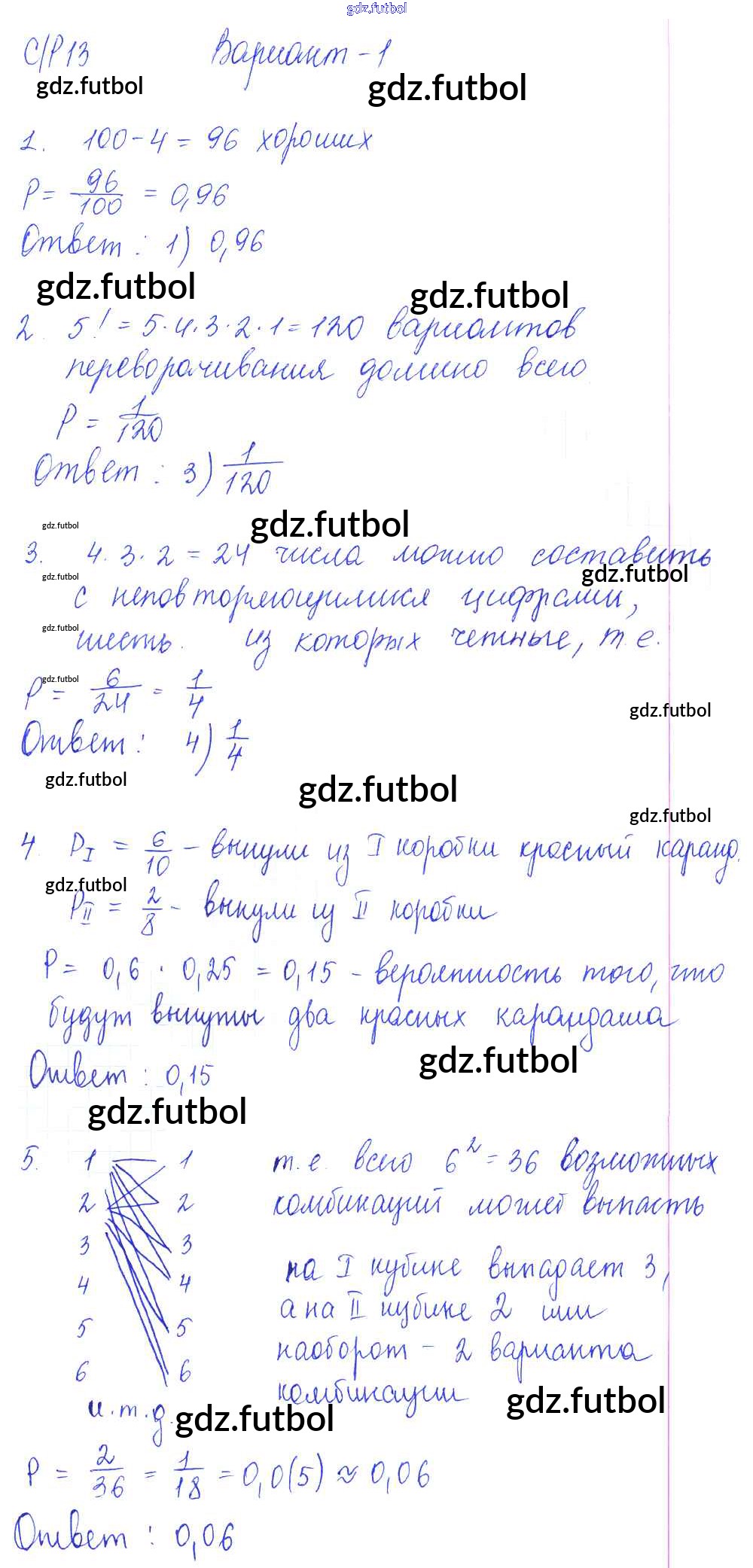 Готовые домашние задания по Алгебре за 9 класс Глазков Самостоятельные и контрольные работы УМК 2013 ФГОС - СР-13. Начальные сведения из теории вероятностей вариант 1