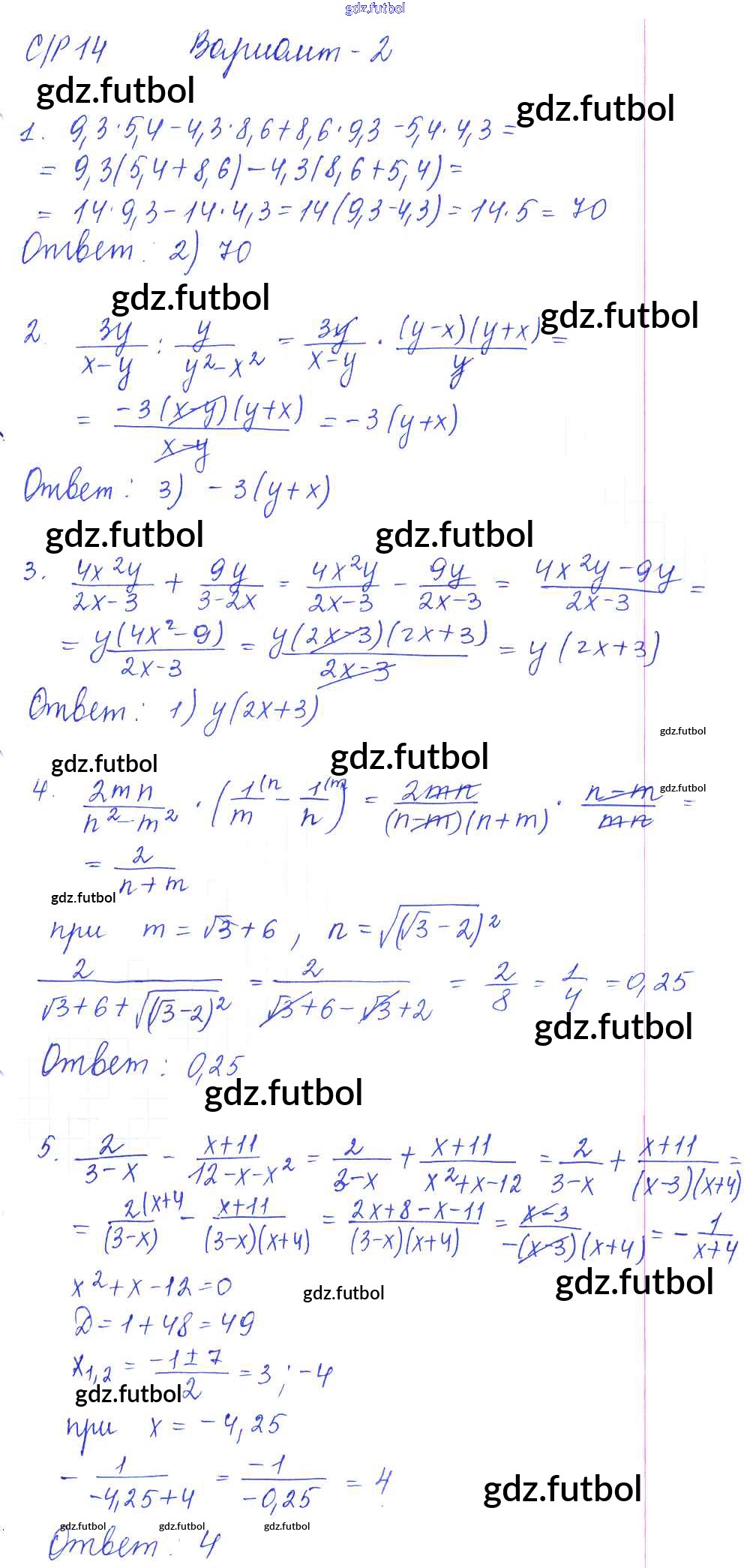 Готовые домашние задания по Алгебре за 9 класс Глазков Самостоятельные и контрольные работы УМК 2013 ФГОС - СР-14. Итоговое повторение. Преобразование целых и дробных выражений вариант 2