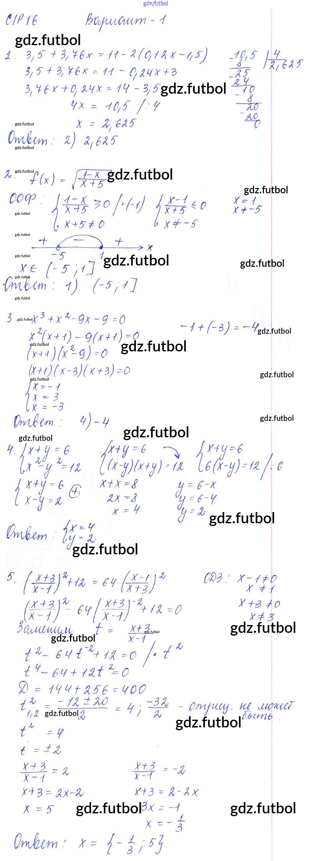 Готовые домашние задания по Алгебре за 9 класс Глазков Самостоятельные и контрольные работы УМК 2013 ФГОС - СР-16. Итоговое повторение. Решение уравнений, неравенств и их систем вариант 1