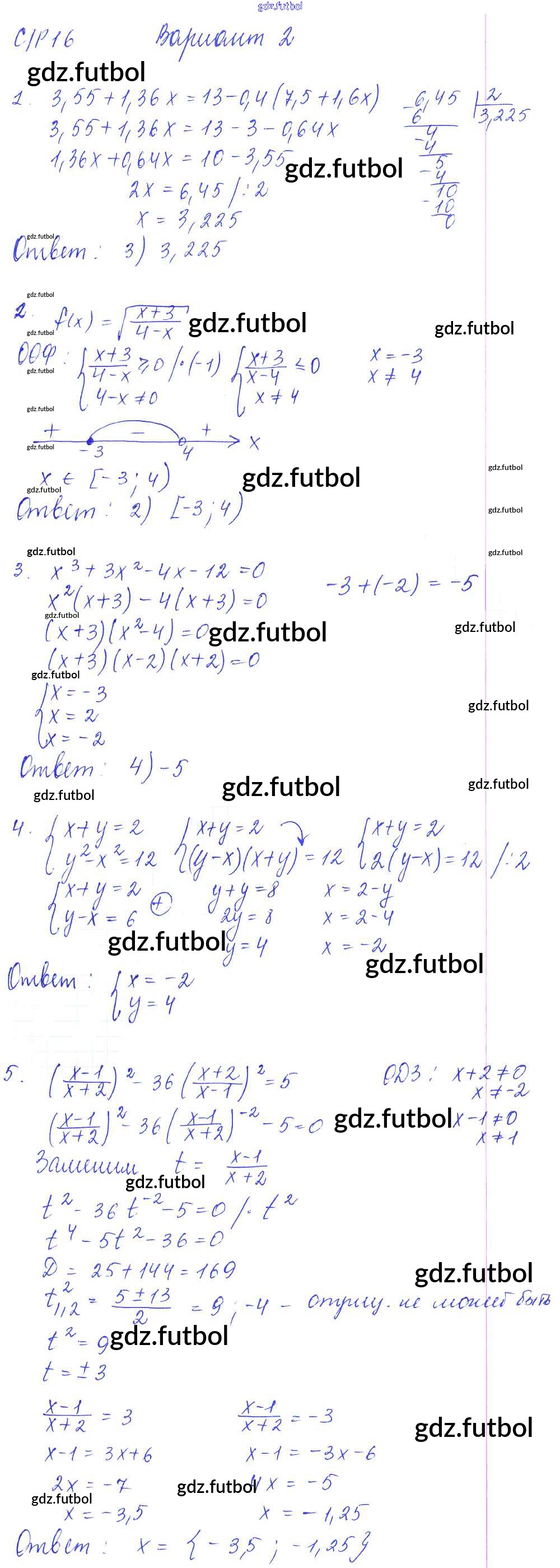 Готовые домашние задания по Алгебре за 9 класс Глазков Самостоятельные и контрольные работы УМК 2013 ФГОС - СР-16. Итоговое повторение. Решение уравнений, неравенств и их систем вариант 2