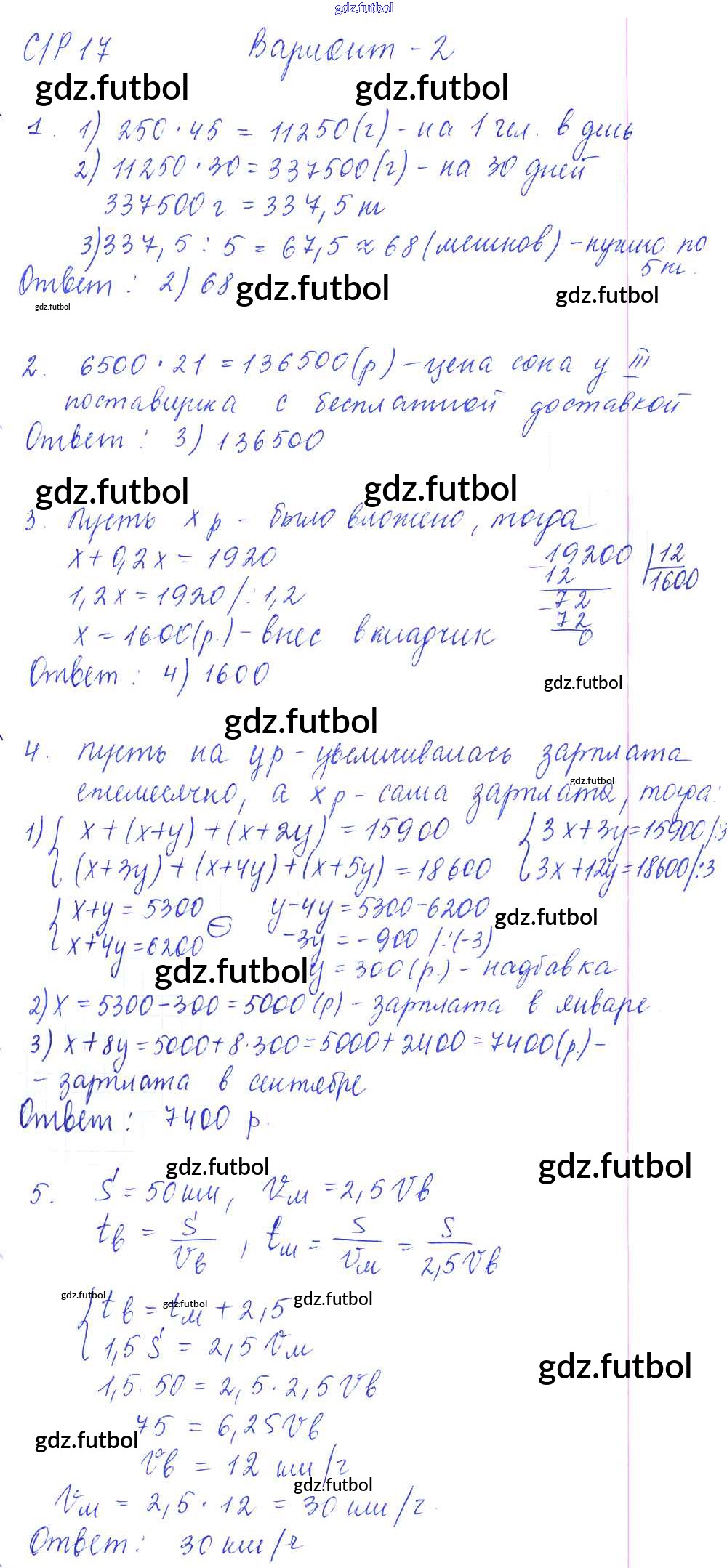 Готовые домашние задания по Алгебре за 9 класс Глазков Самостоятельные и контрольные работы УМК 2013 ФГОС - СР-17. Итоговое повторение. Решение текстовых задач вариант 2