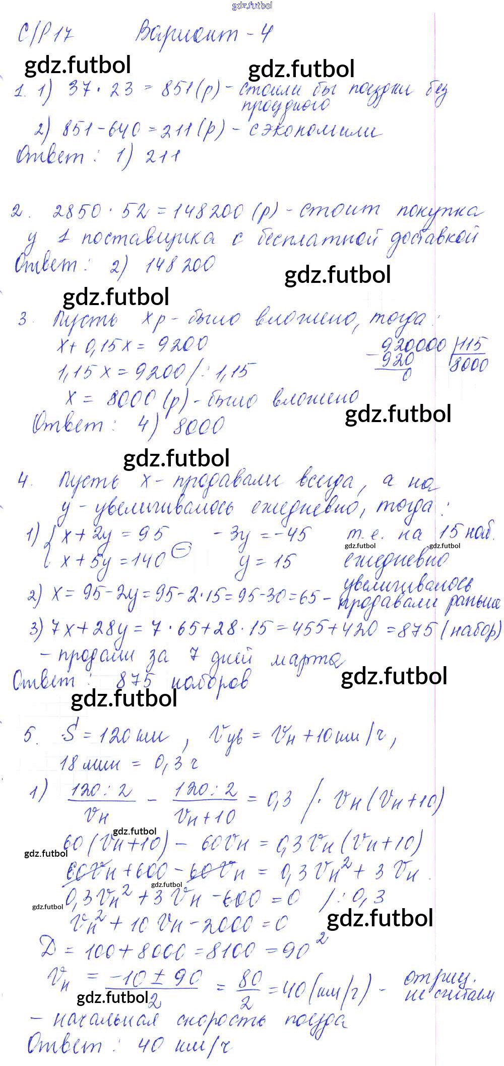 Готовые домашние задания по Алгебре за 9 класс Глазков Самостоятельные и контрольные работы УМК 2013 ФГОС - СР-17. Итоговое повторение. Решение текстовых задач вариант 4