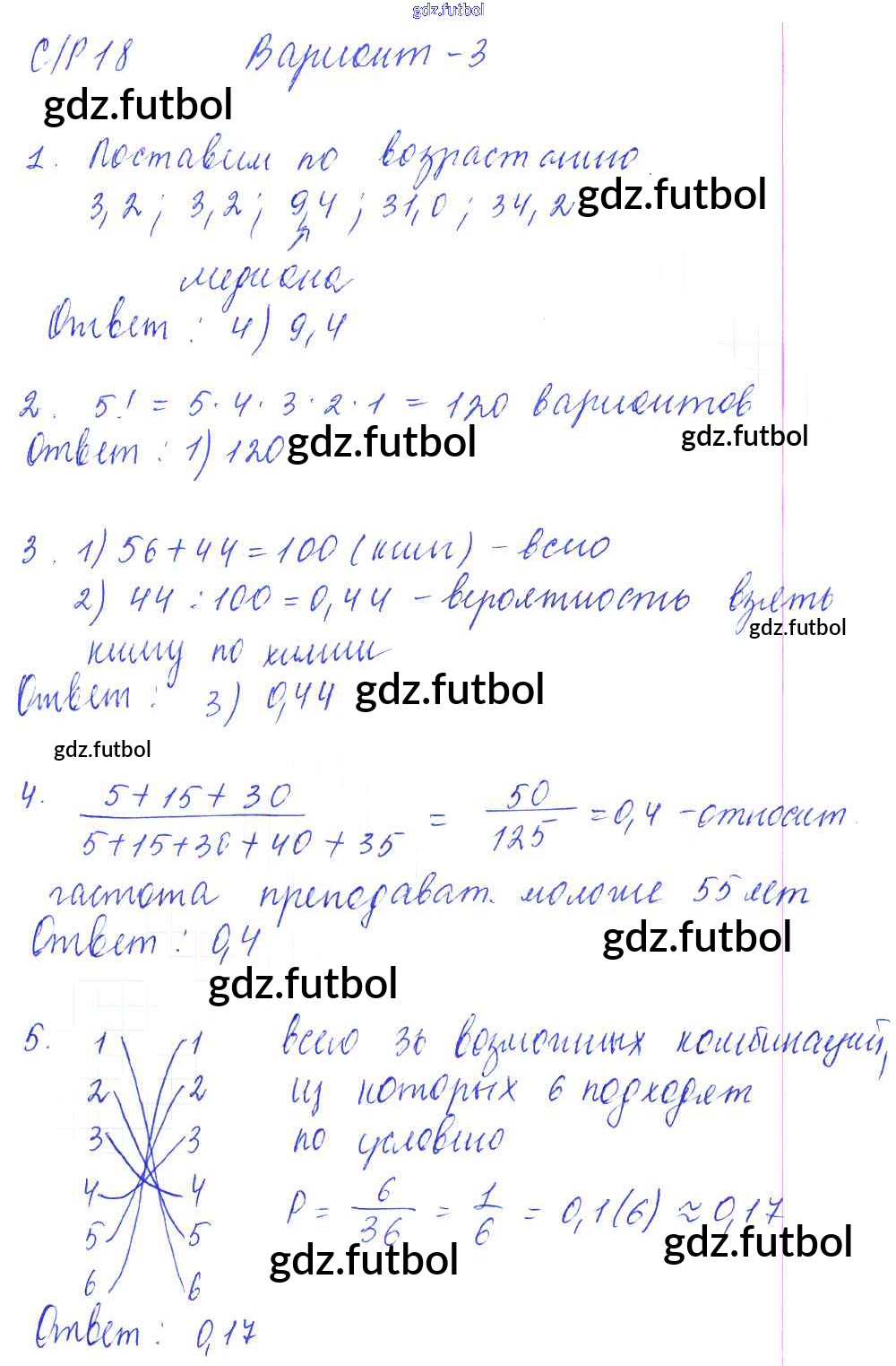 Готовые домашние задания по Алгебре за 9 класс Глазков Самостоятельные и контрольные работы УМК 2013 ФГОС - СР-18. Итоговое повторение. Элементы статистики и теории вероятностей вариант 3