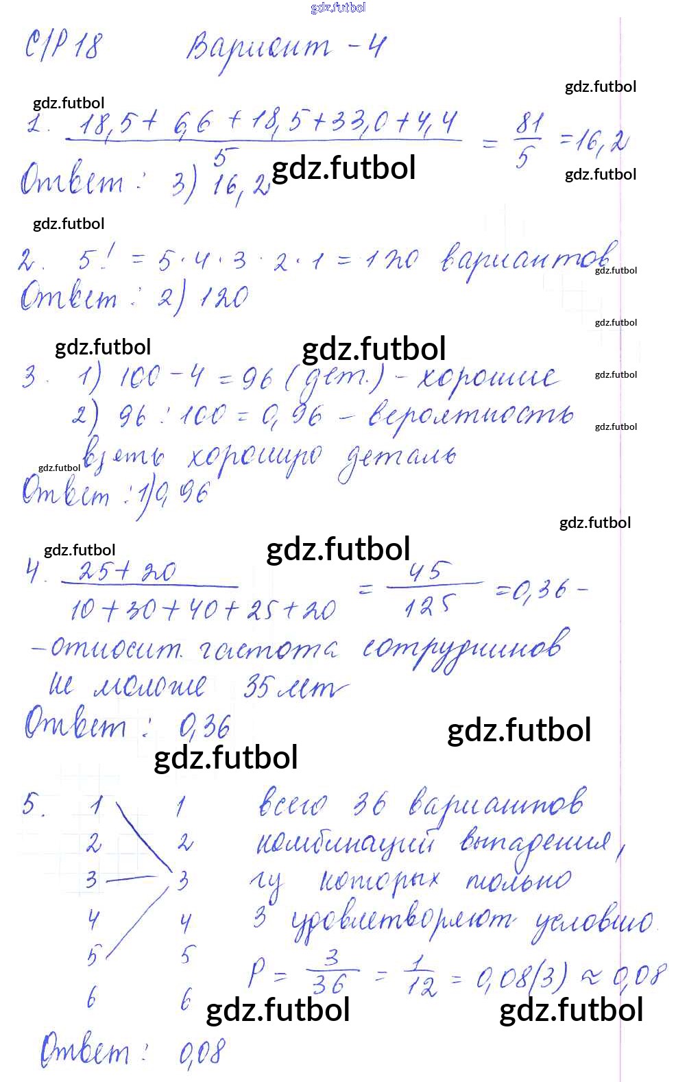 Готовые домашние задания по Алгебре за 9 класс Глазков Самостоятельные и контрольные работы УМК 2013 ФГОС - СР-18. Итоговое повторение. Элементы статистики и теории вероятностей вариант 4