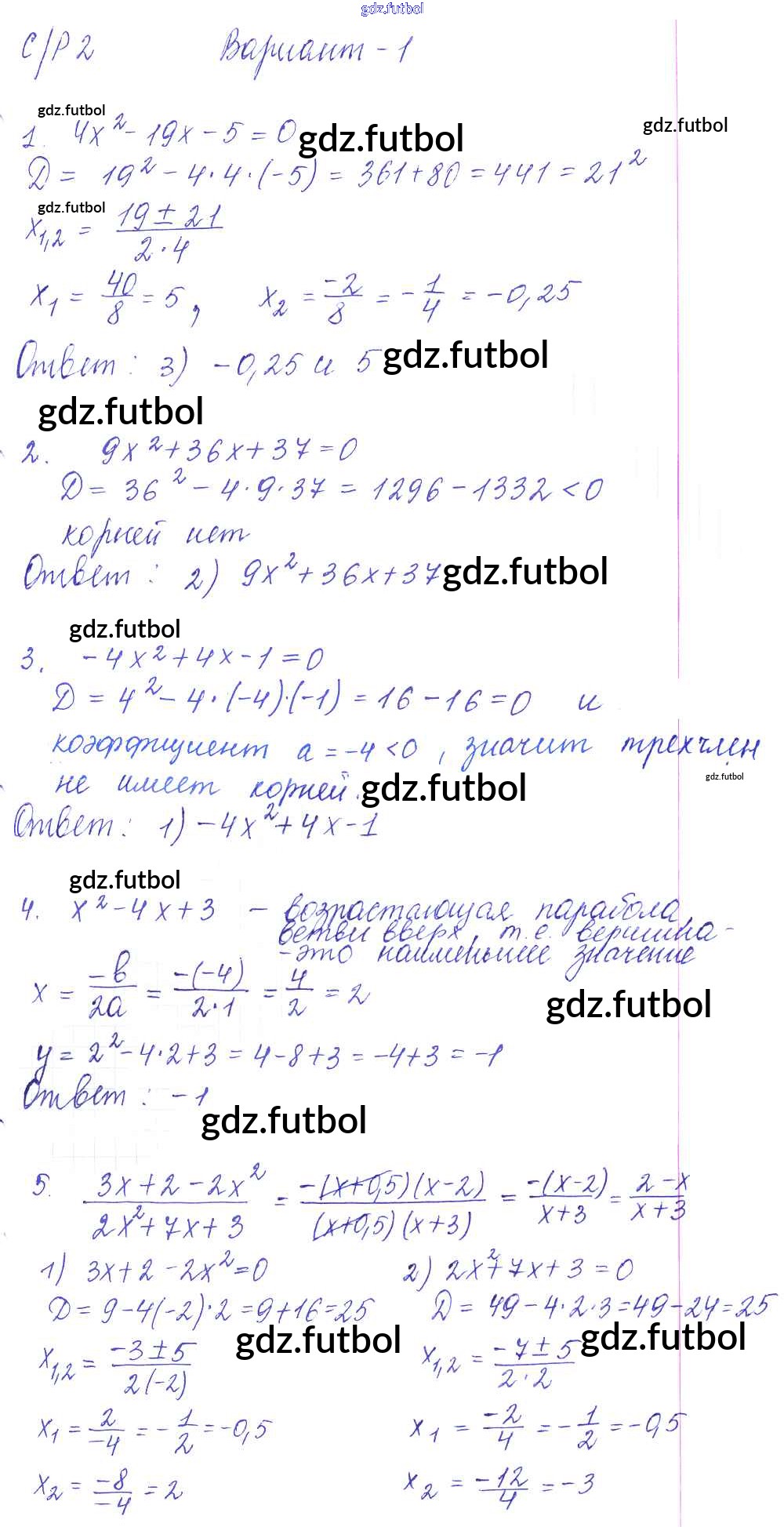 Готовые домашние задания по Алгебре за 9 класс Глазков Самостоятельные и контрольные работы УМК 2013 ФГОС - СР-2. Квадратный трехчлен вариант 1