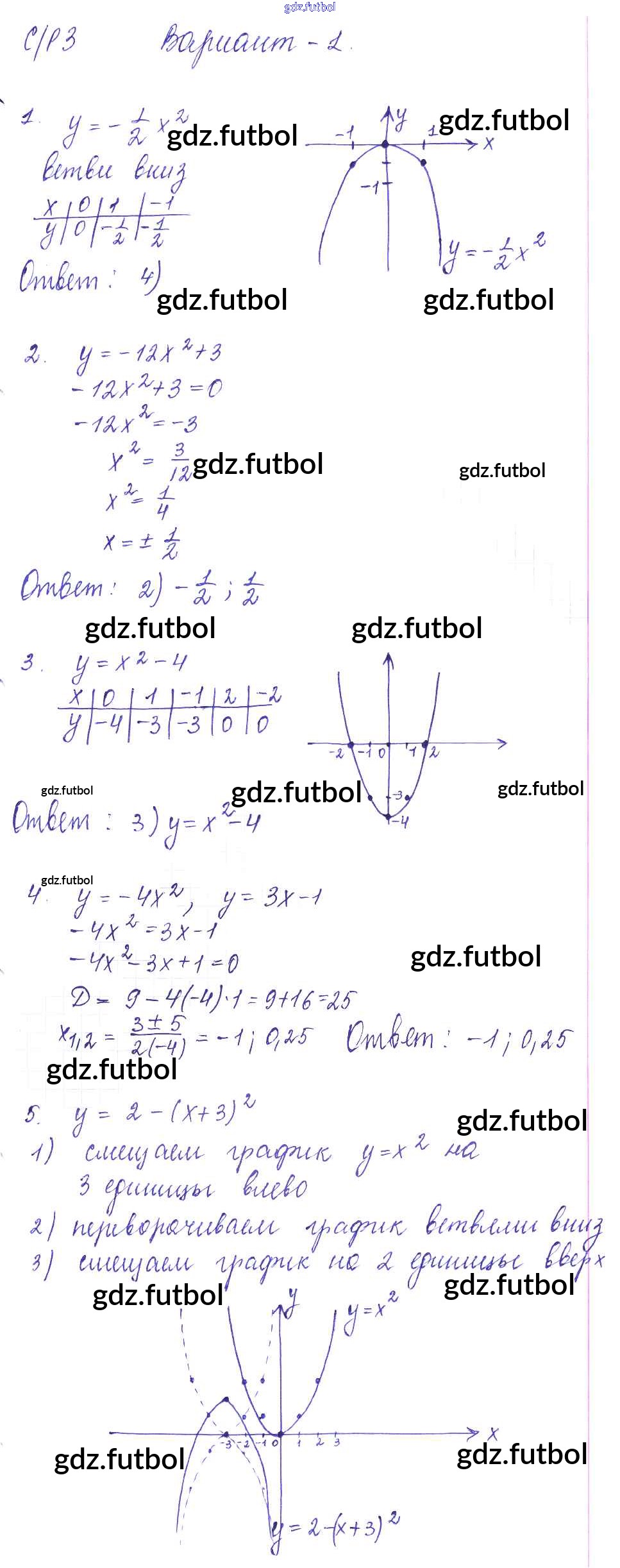 Готовые домашние задания по Алгебре за 9 класс Глазков Самостоятельные и контрольные работы УМК 2013 ФГОС - СР-3. Квадратичная функция и её график вариант 1