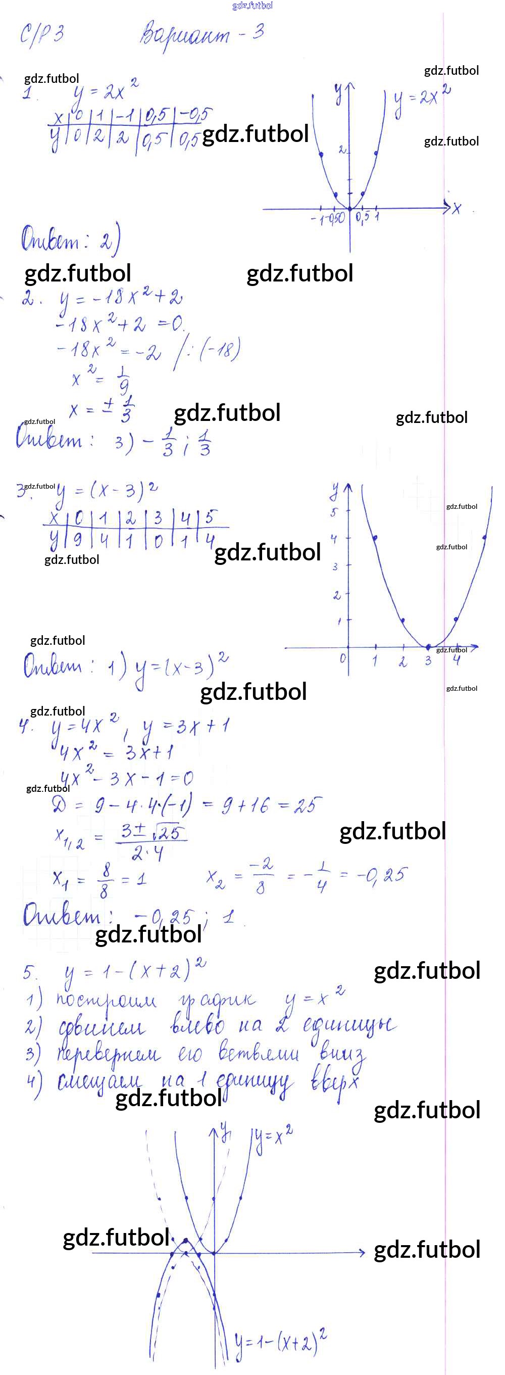 Готовые домашние задания по Алгебре за 9 класс Глазков Самостоятельные и контрольные работы УМК 2013 ФГОС - СР-3. Квадратичная функция и её график вариант 3
