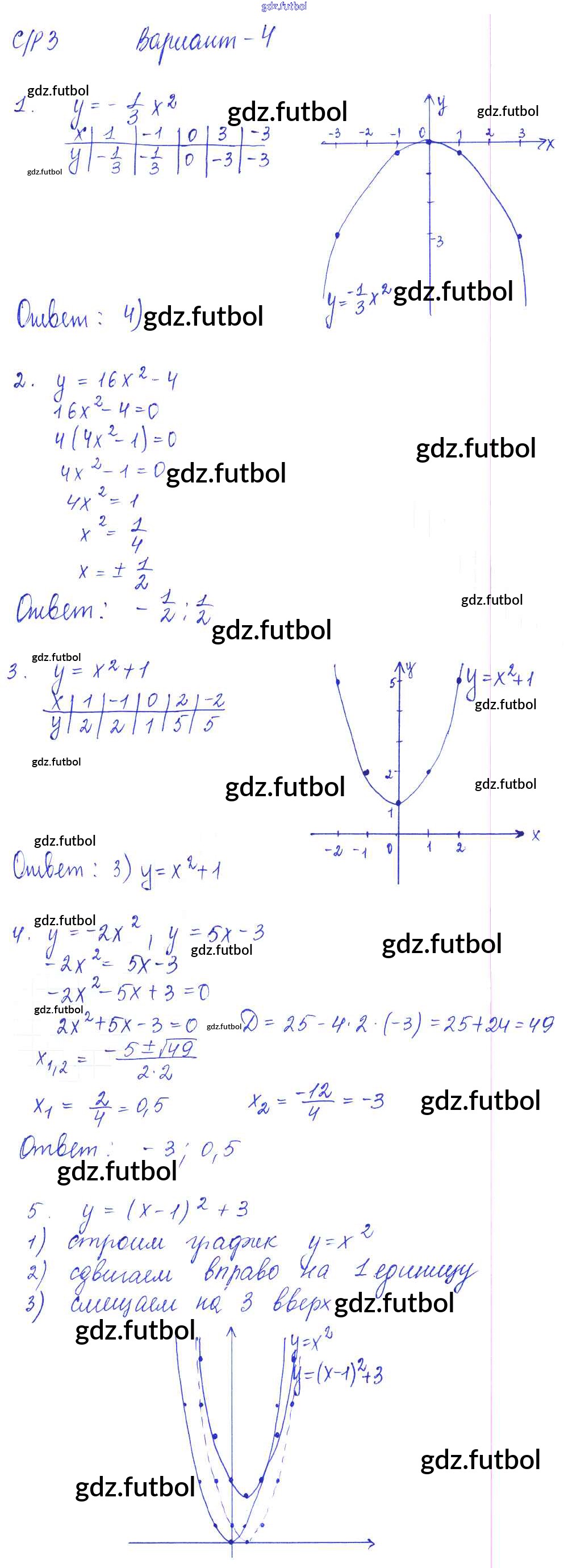 Готовые домашние задания по Алгебре за 9 класс Глазков Самостоятельные и контрольные работы УМК 2013 ФГОС - СР-3. Квадратичная функция и её график вариант 4