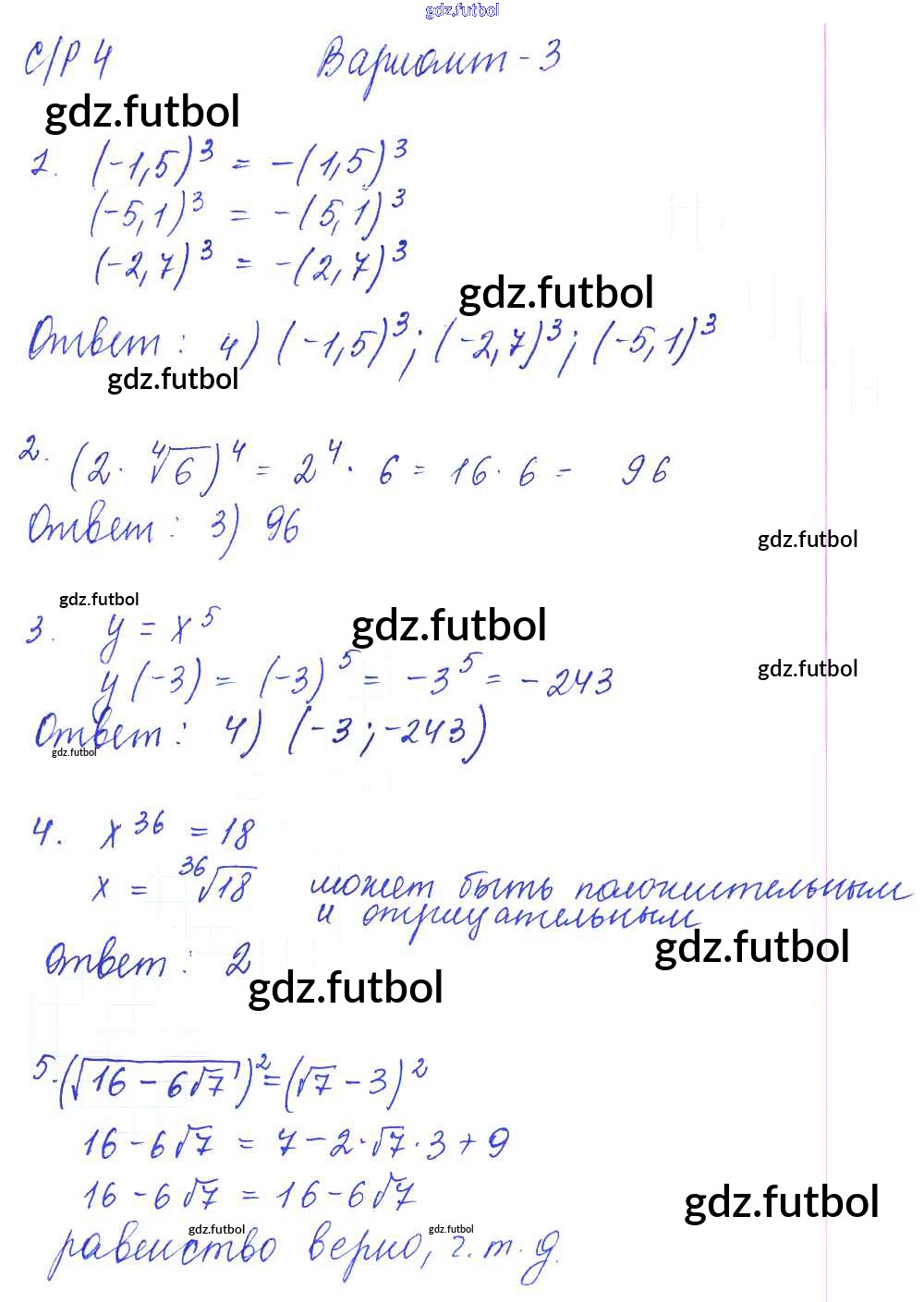 Готовые домашние задания по Алгебре за 9 класс Глазков Самостоятельные и контрольные работы УМК 2013 ФГОС - СР-4. Степенная функция. Корень n-й степени вариант 3
