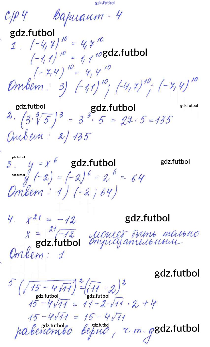 Готовые домашние задания по Алгебре за 9 класс Глазков Самостоятельные и контрольные работы УМК 2013 ФГОС - СР-4. Степенная функция. Корень n-й степени вариант 4