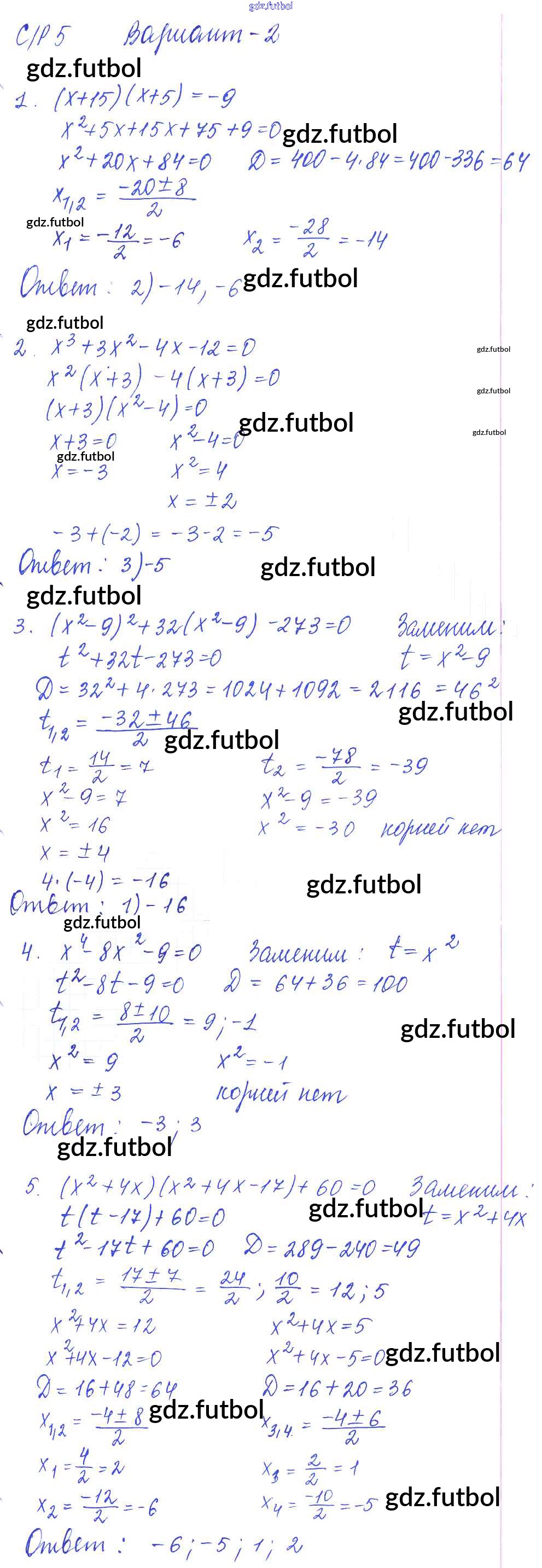 Готовые домашние задания по Алгебре за 9 класс Глазков Самостоятельные и контрольные работы УМК 2013 ФГОС - СР-5. Уравнения с одной переменной вариант 2