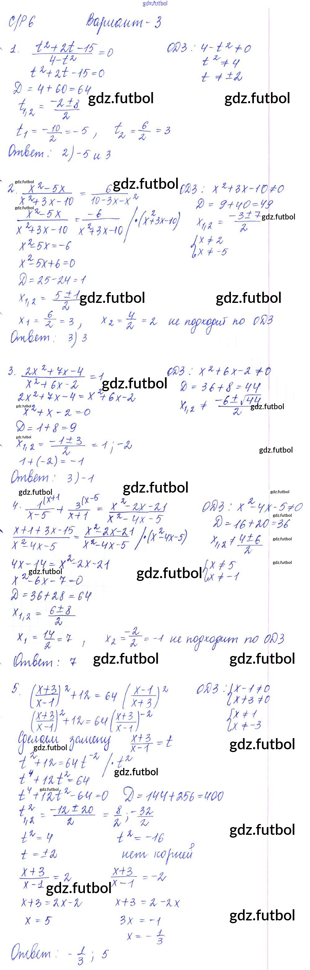 Готовые домашние задания по Алгебре за 9 класс Глазков Самостоятельные и контрольные работы УМК 2013 ФГОС - СР-6. Дробные рациональные уравнения вариант 3