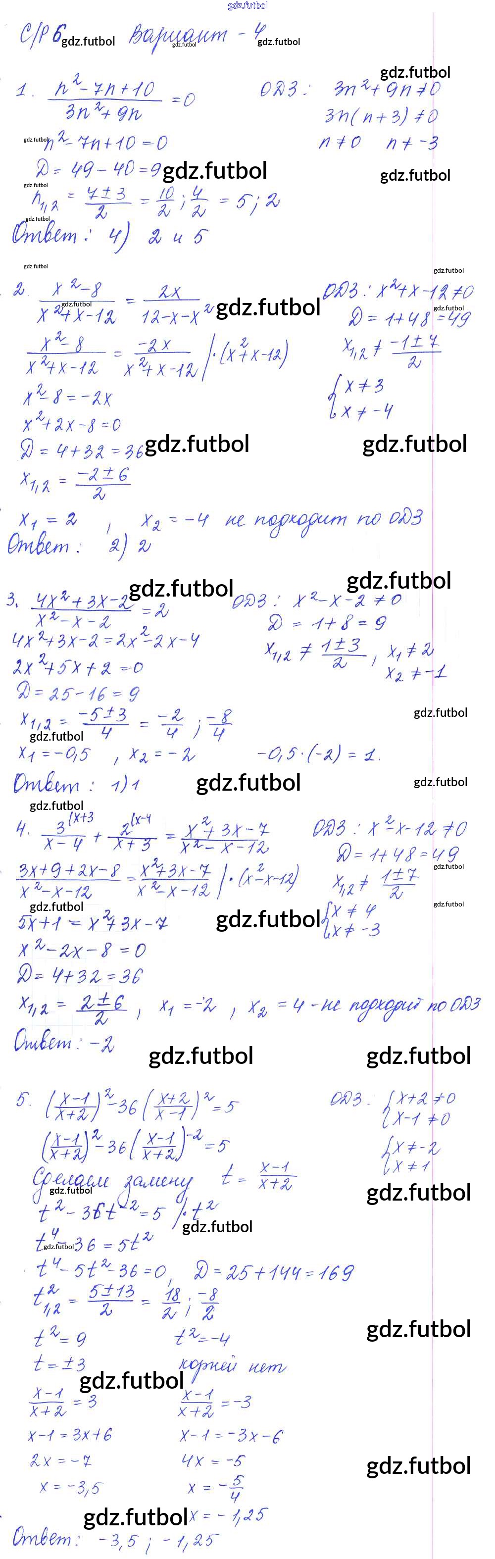Готовые домашние задания по Алгебре за 9 класс Глазков Самостоятельные и контрольные работы УМК 2013 ФГОС - СР-6. Дробные рациональные уравнения вариант 4
