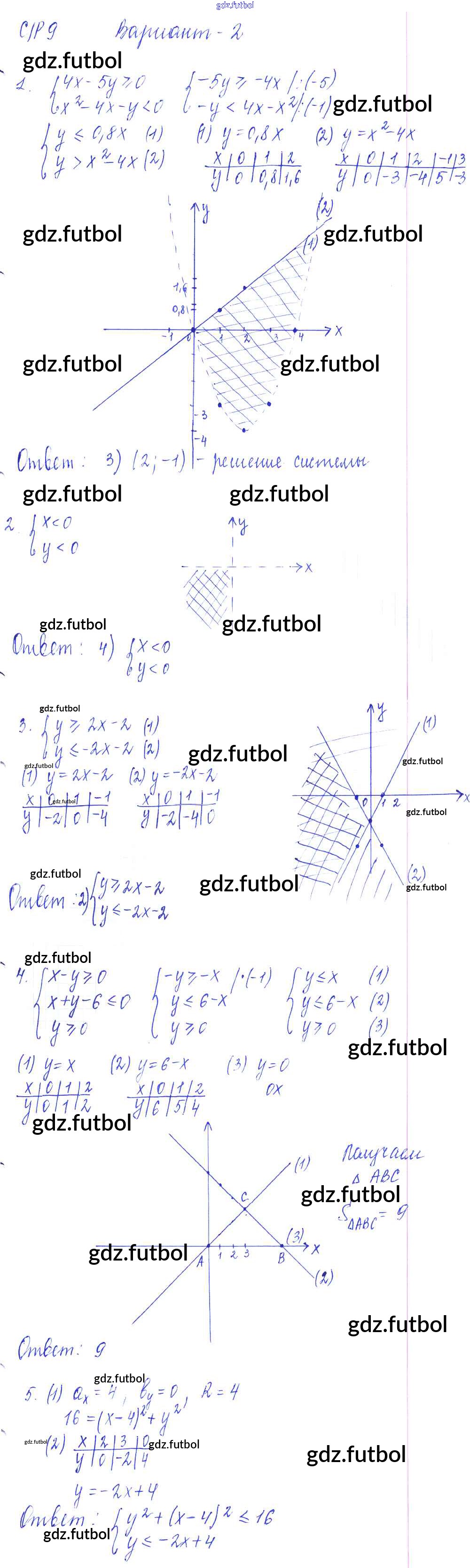 Готовые домашние задания по Алгебре за 9 класс Глазков Самостоятельные и контрольные работы УМК 2013 ФГОС - СР-9. Неравенства с двумя переменными и их системы вариант 2