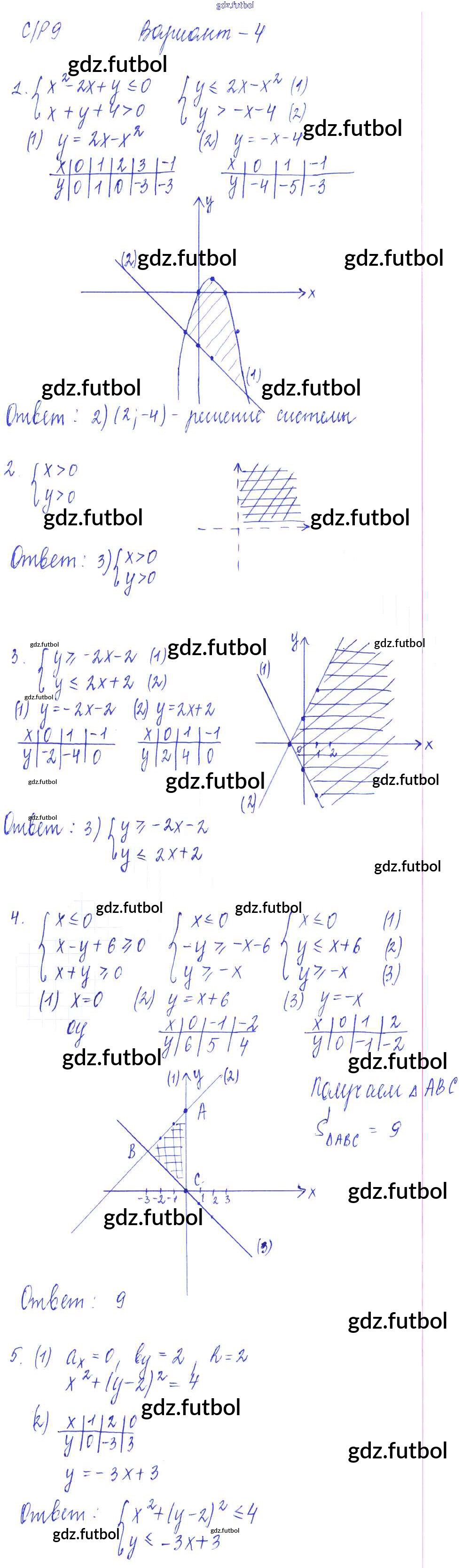 Готовые домашние задания по Алгебре за 9 класс Глазков Самостоятельные и контрольные работы УМК 2013 ФГОС - СР-9. Неравенства с двумя переменными и их системы вариант 4