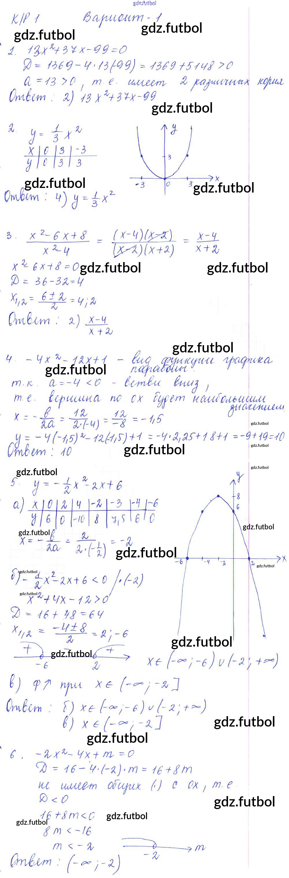 Готовые домашние задания по Алгебре за 9 класс Глазков Самостоятельные и контрольные работы УМК 2013 ФГОС - КР-1. Функции и их свойства. Квадратный трехчлен. Квадратичная функция и её график вариант 1